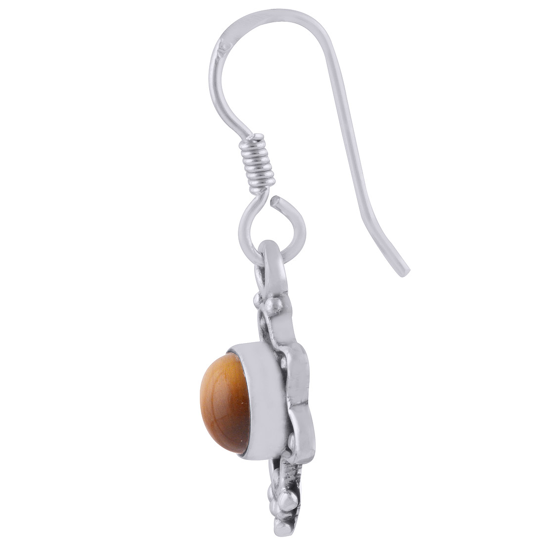 TIGERS EYE NATURAL GEMSTONE 925 STERLING SOLID SILVER ROUND CABOCHON STONE HANDMADE EARRINGS