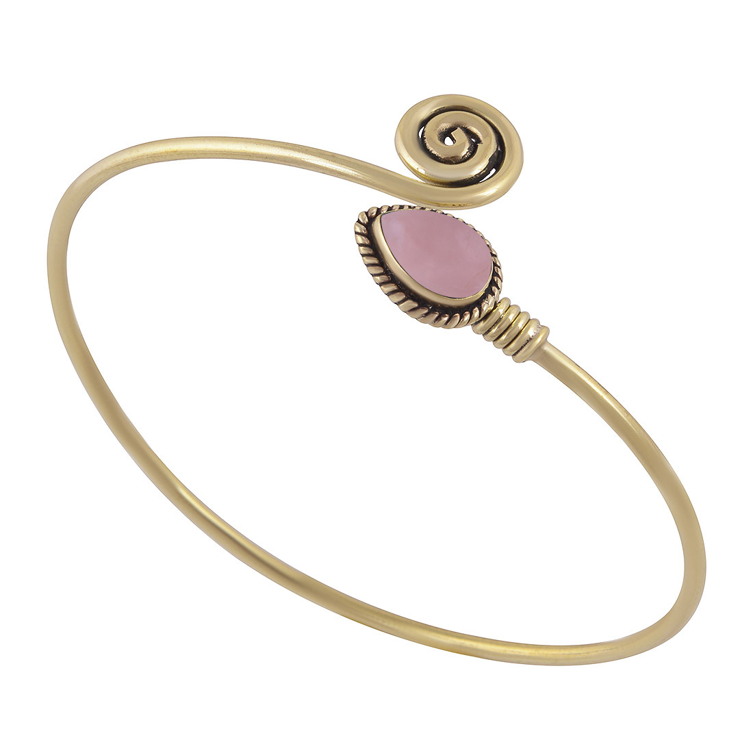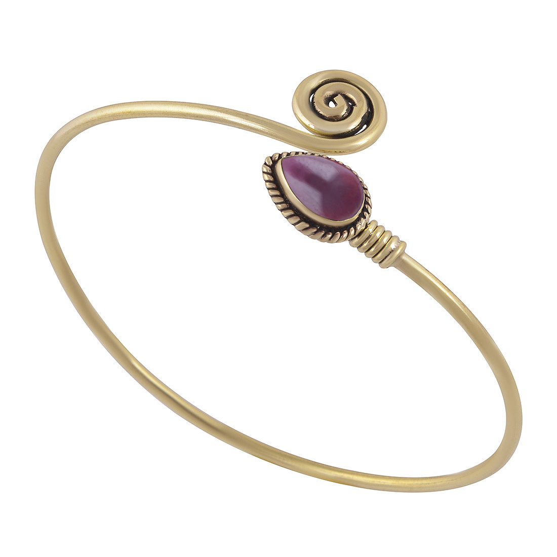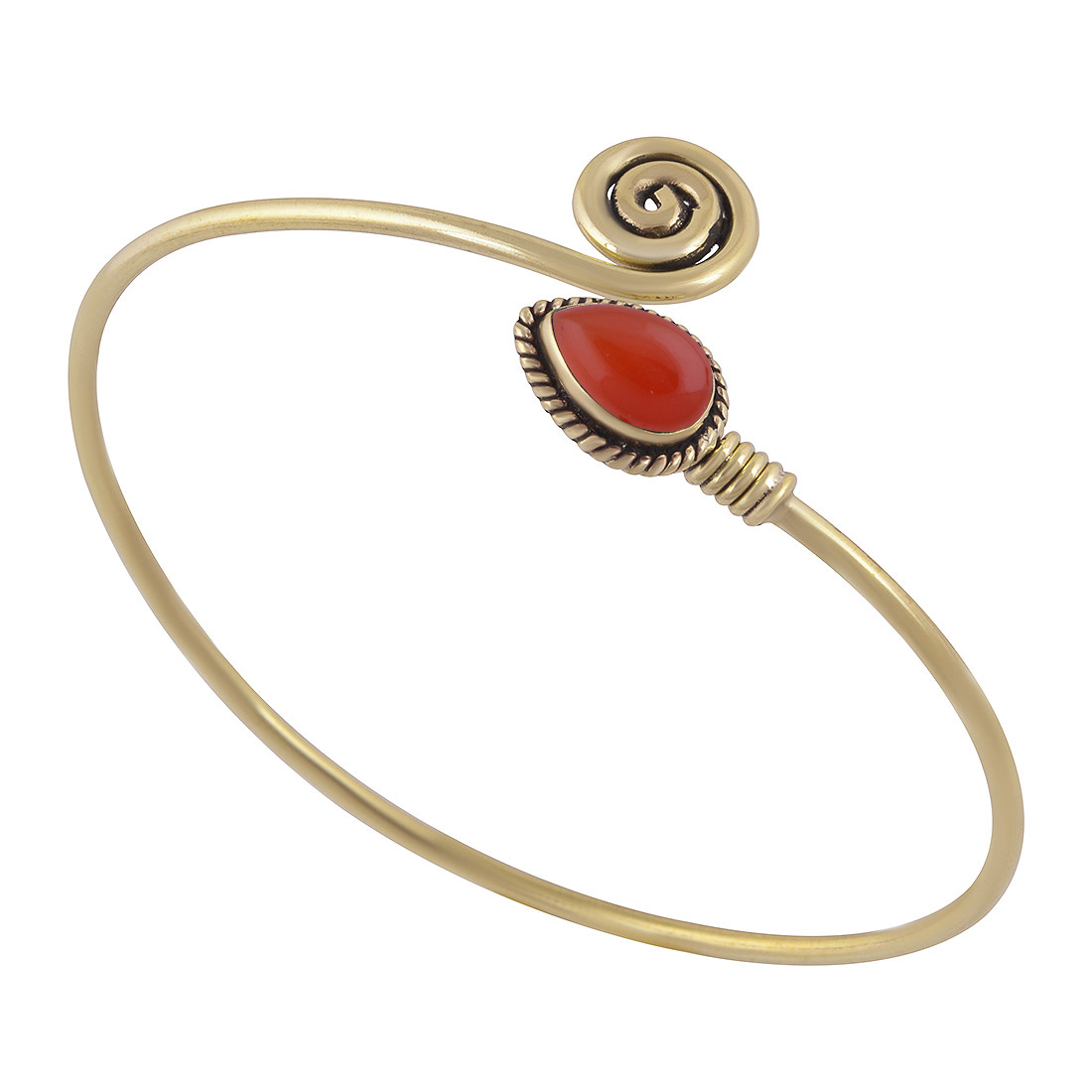Beautiful Twisted Wire Work Around Coral Pear Shape Solid Brass Bangle