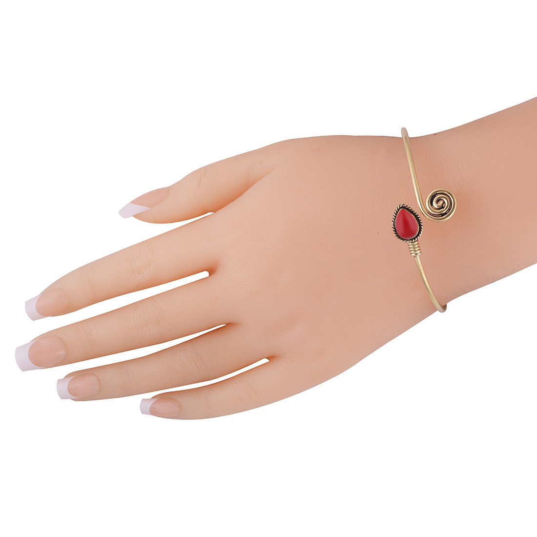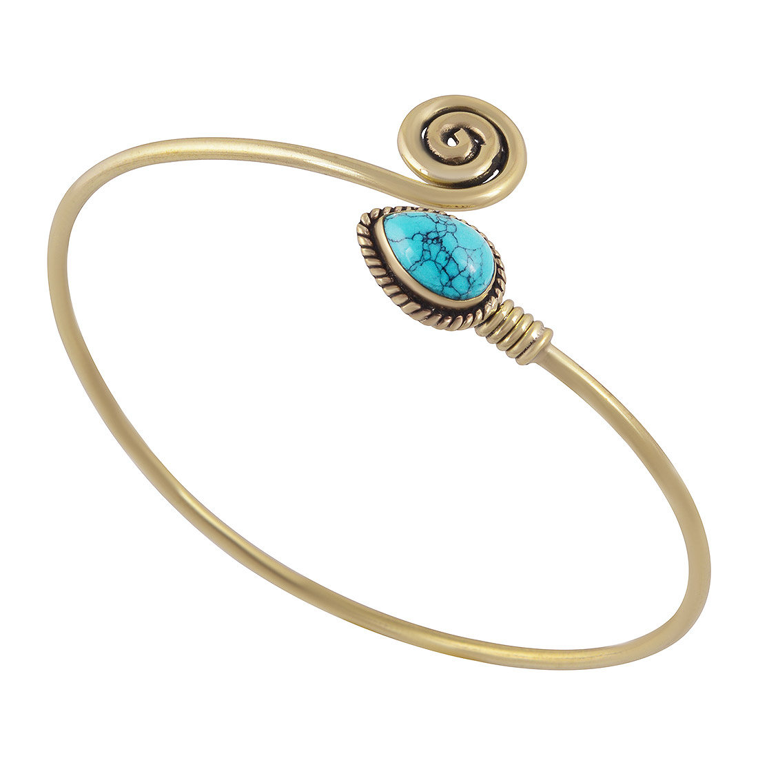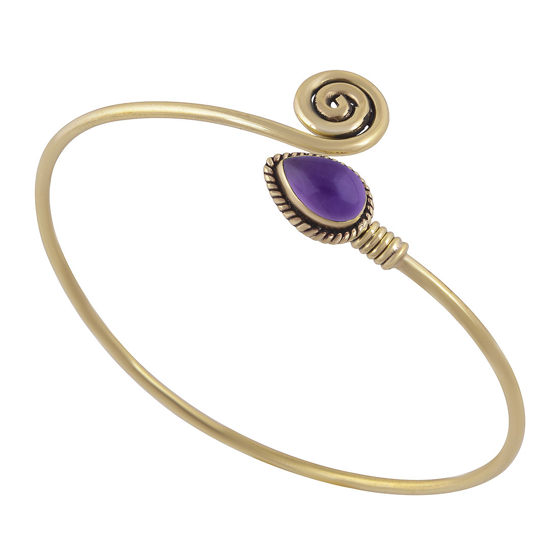 Beautiful Twisted Wire Work Around Coral Pear Shape Solid Brass Bangle