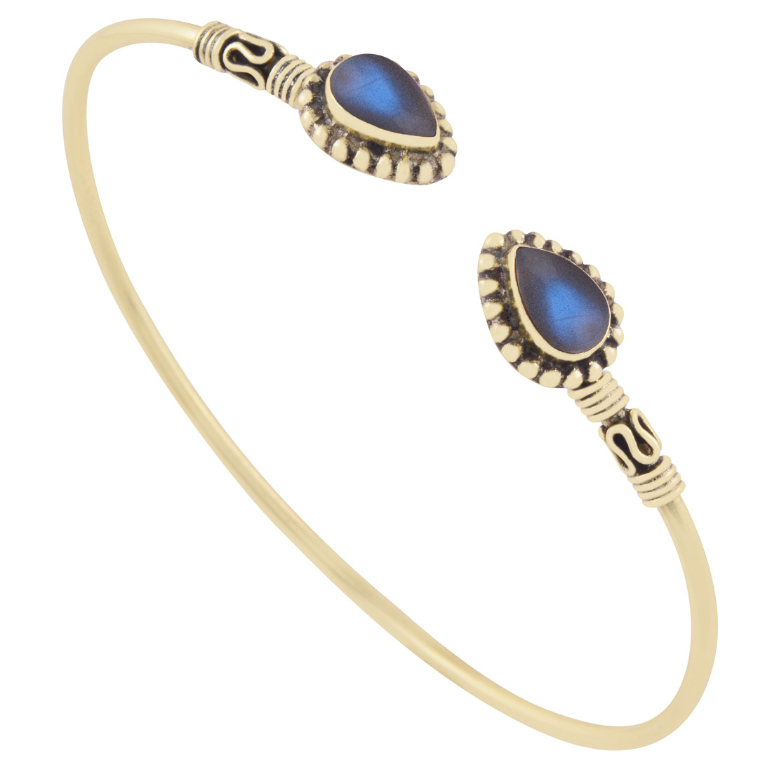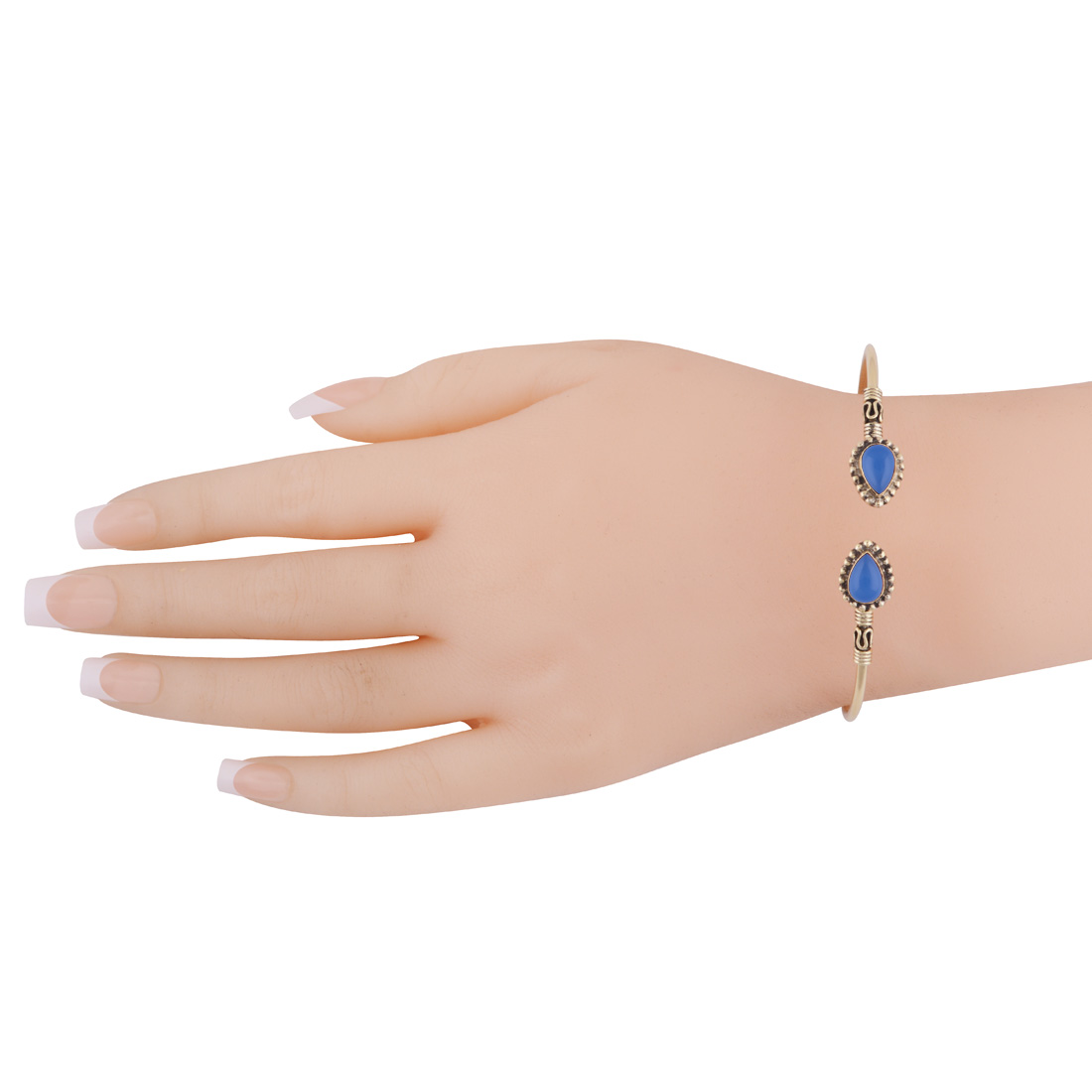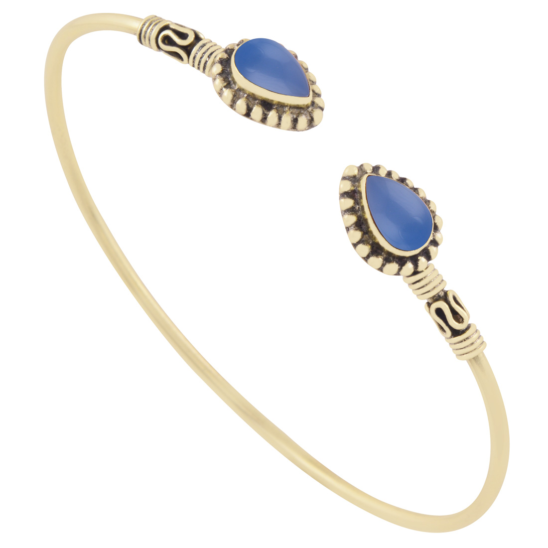 Beautiful Wire & Rawa Work Around Blue Chalcedony Pear Shape Solid Brass Bangle