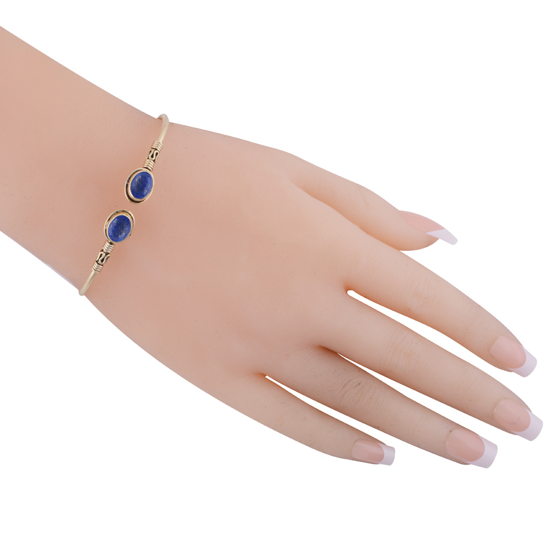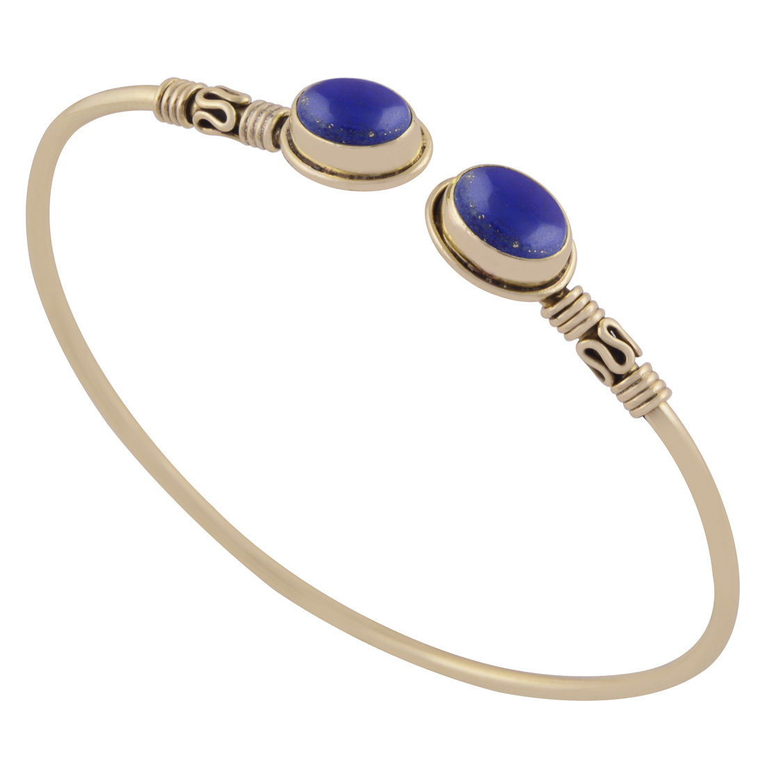Beautifully Handcrafted Wire Work Around Lapis Oval Shape Solid Brass Bangle
