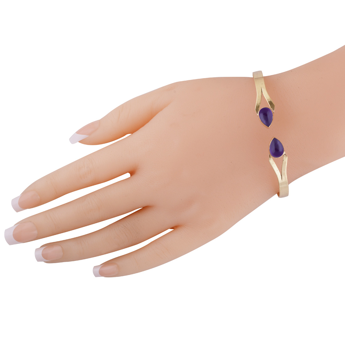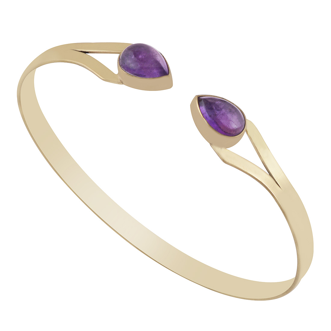 Gorgeous Handcrafted Amethyst Pear Shape Solid Brass Bangle