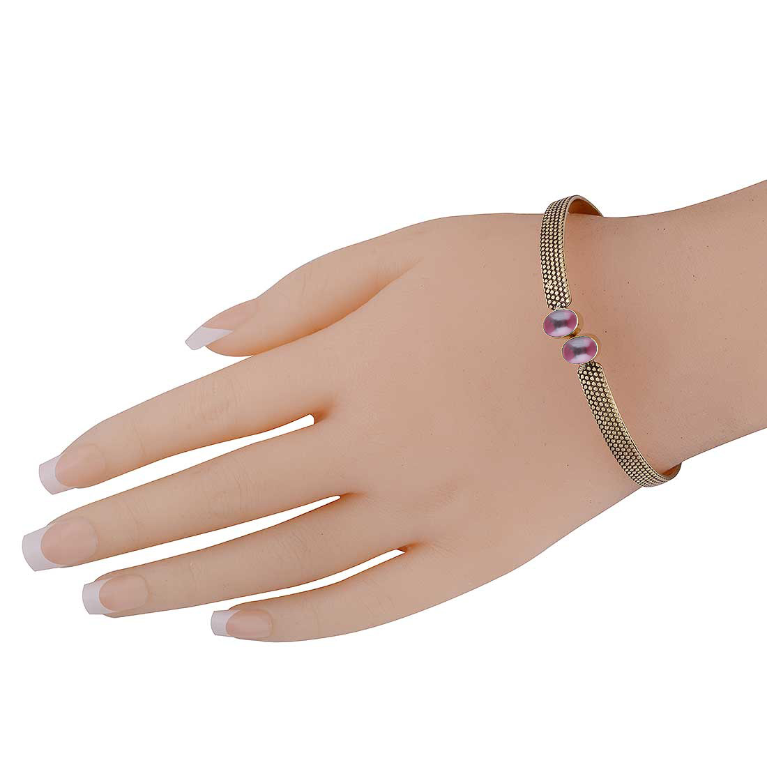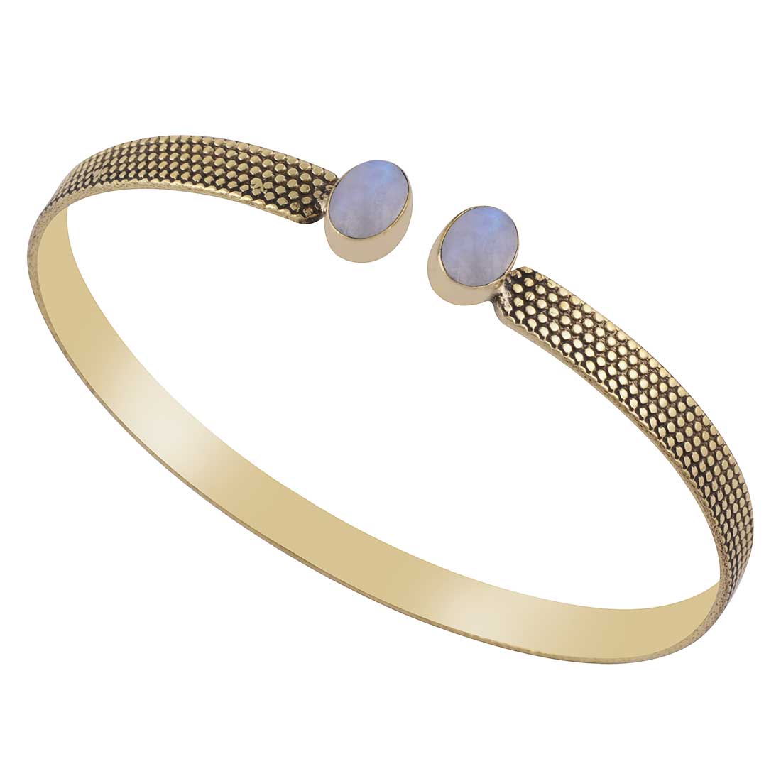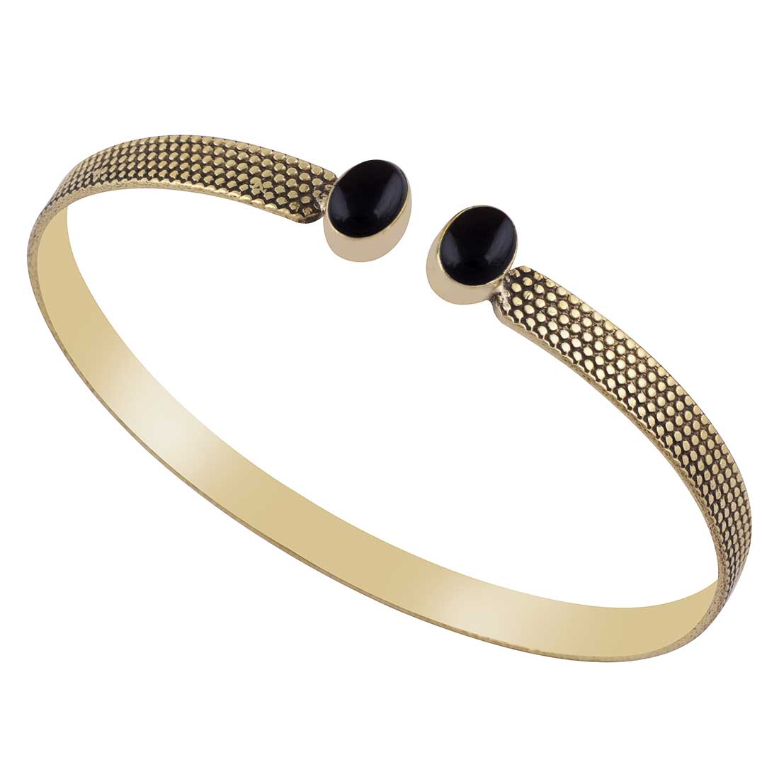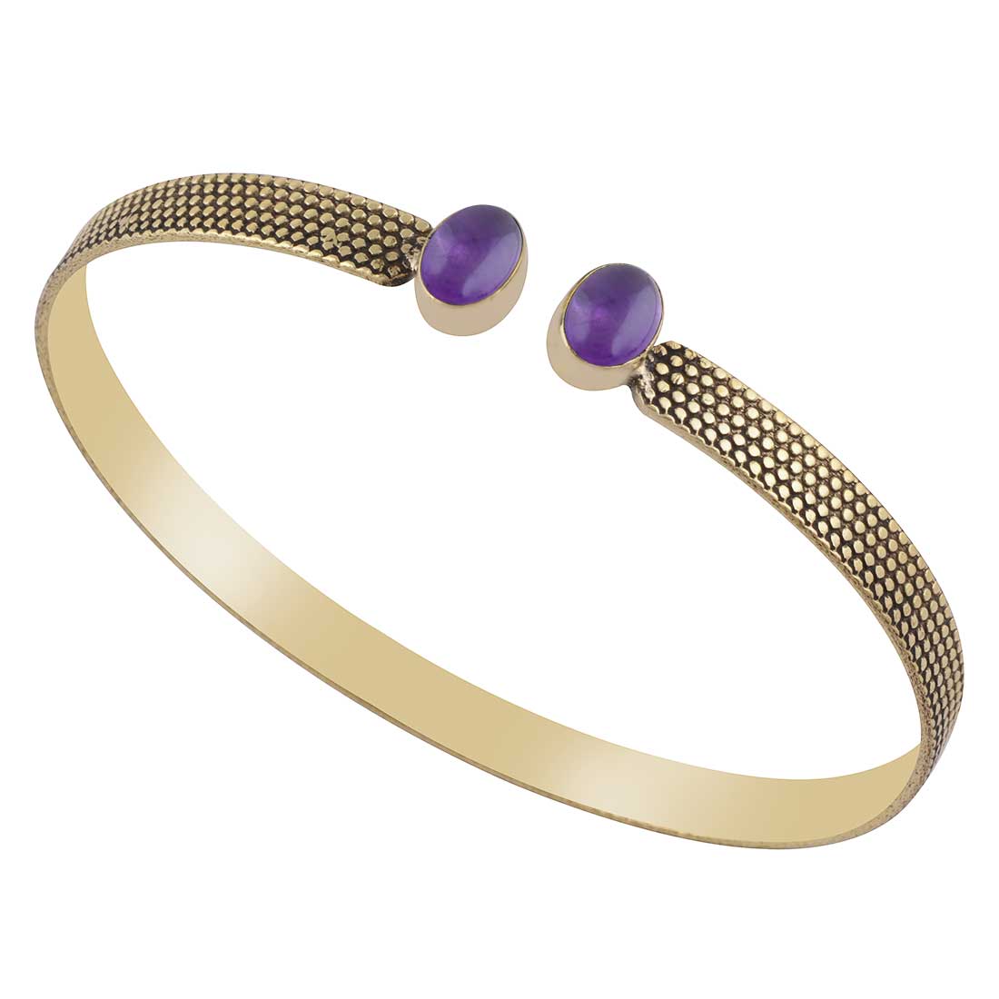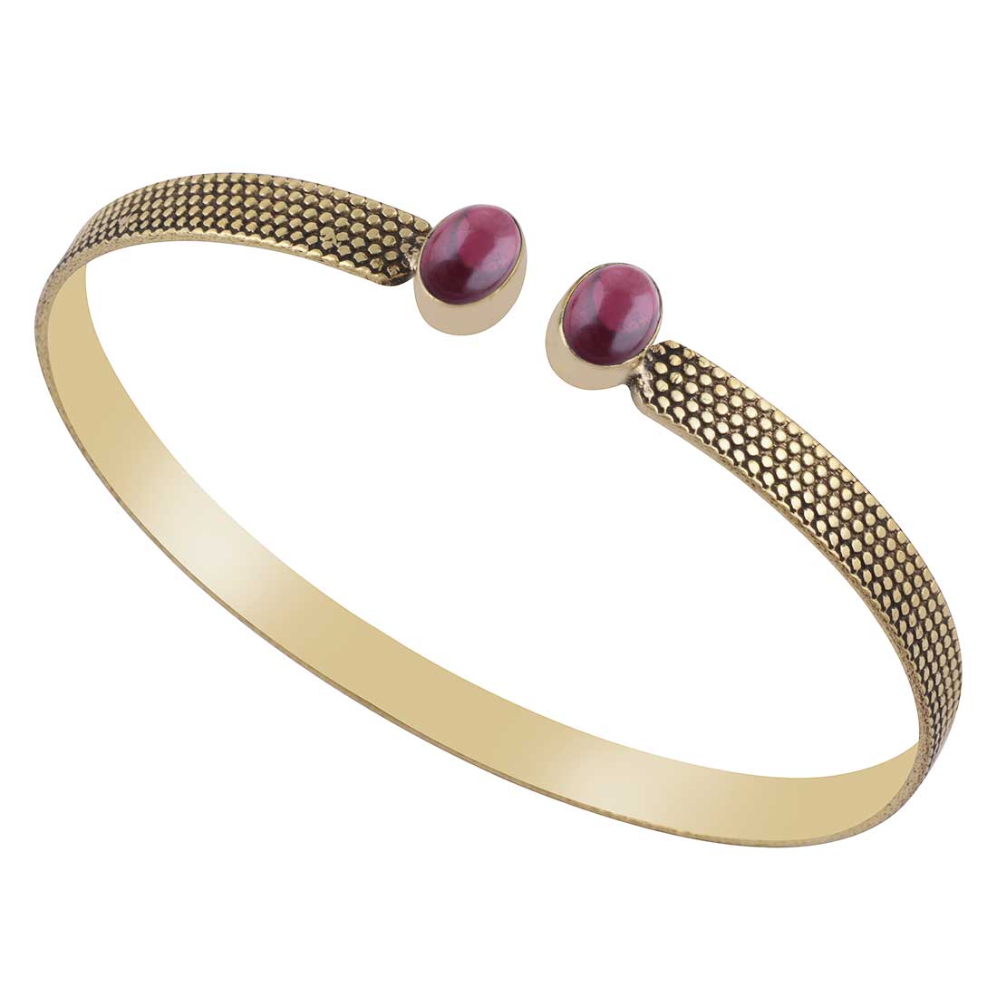 Stunning Oxidised Pattern Around Garnet Oval Shape Solid Brass Bangle